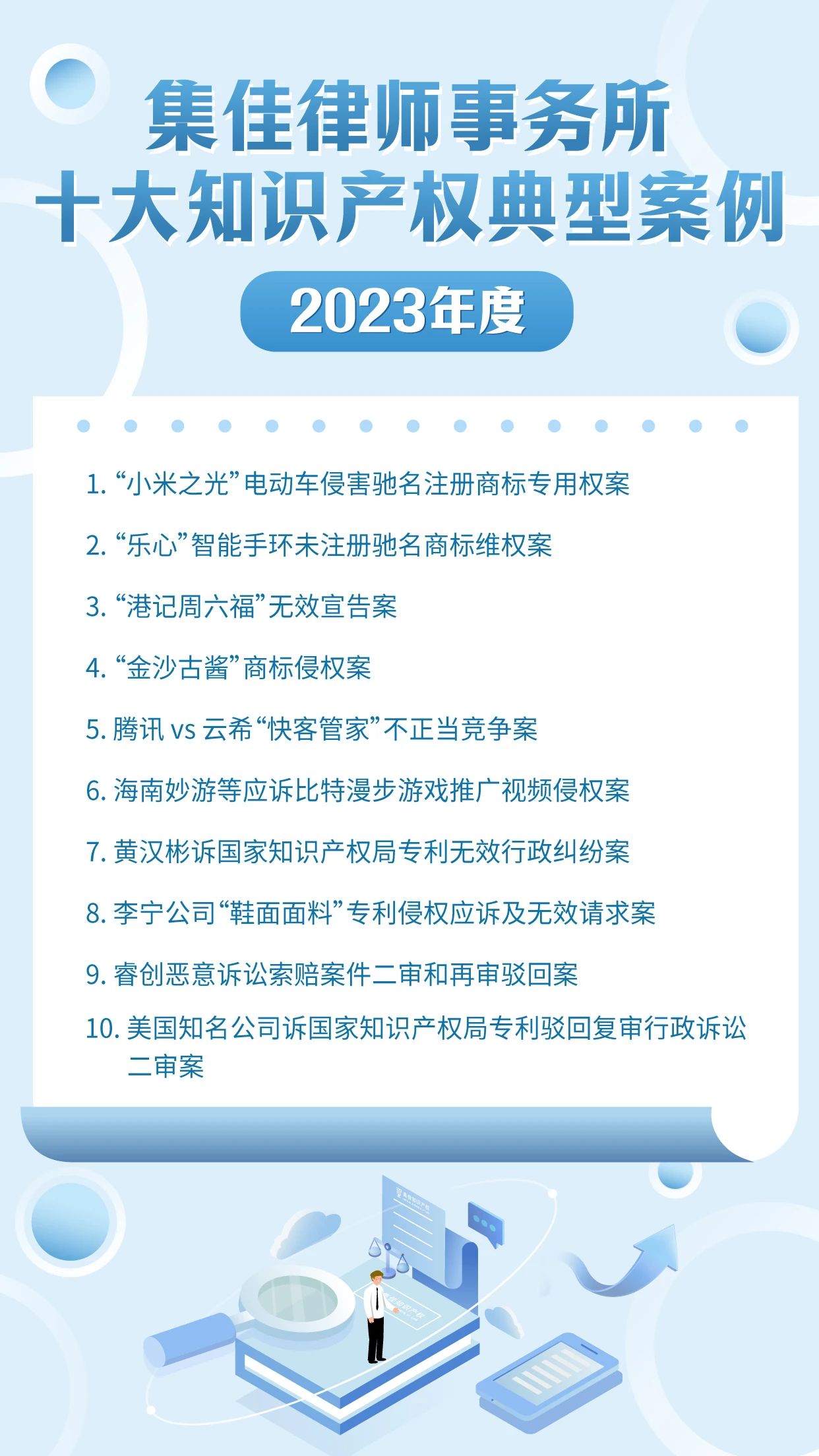作为迎接4.26世界知识产权日的献礼之一,快直播已连续十年开展十大知识产权典型案例的评选活动,其意义不仅在于展现集佳律师团队的专业能力和水准,更在于传递集佳全方位服务客户的理念。在第24个世界知识产权日来临之际,快直播从2023年度代理的众多知识产权案件中筛选出具有代表性的十大案例,与各界同仁分享: