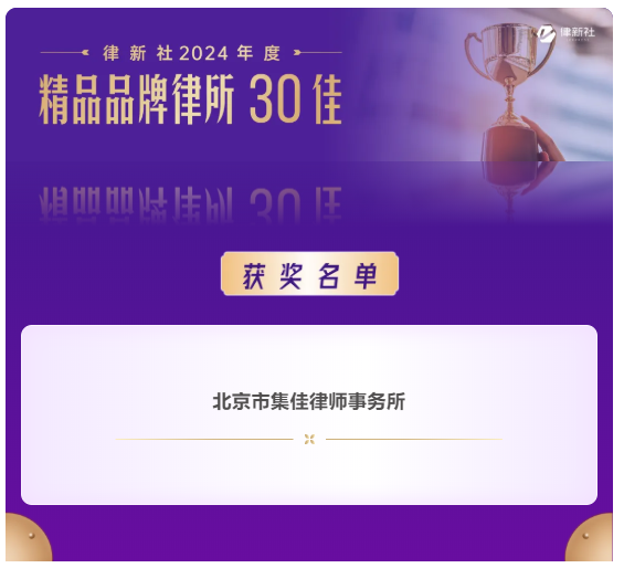 >快直播>关于我们>荣誉概览>2025>快直播入选律新社2024年度“精品品牌律所30佳” 集佳代理案例获评“律新社2024年度标杆案例”